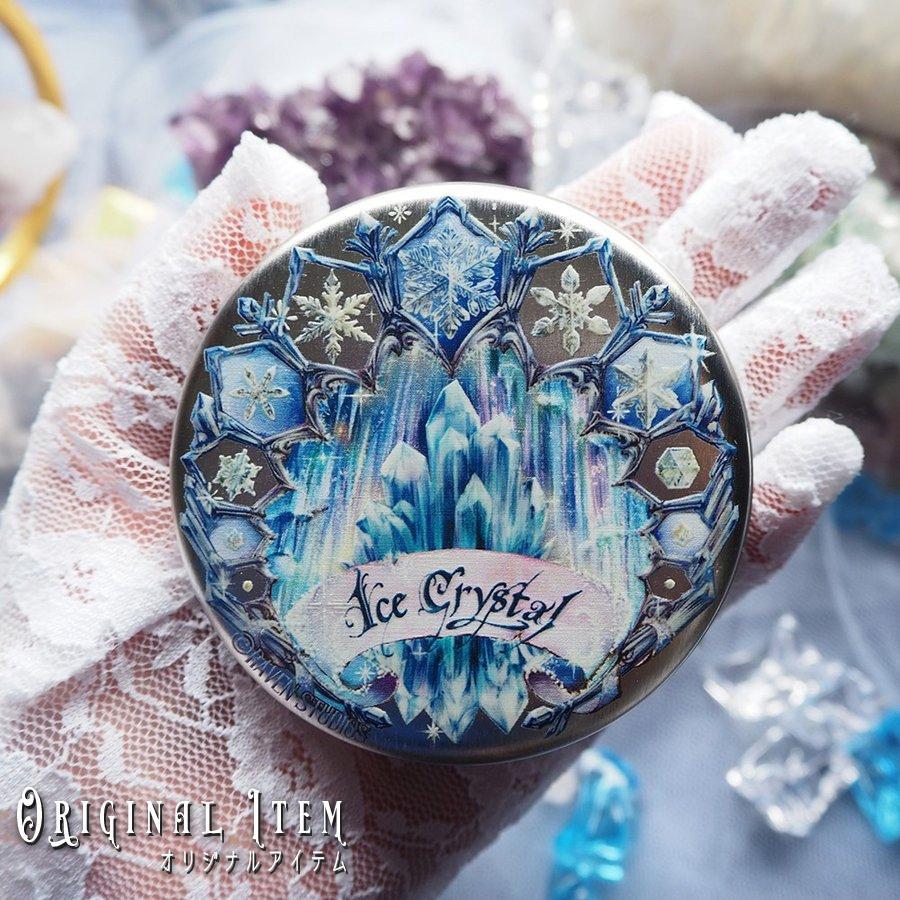 オーロラの光を受け輝く氷の結晶をイメージした手書き風のオリジナルデザイン金平糖缶