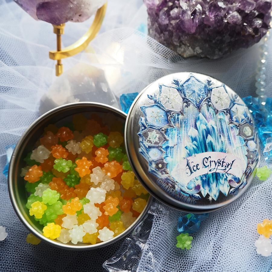 様々な光を受けて輝いているかのようなカラフルな金平糖は氷の結晶のよう。