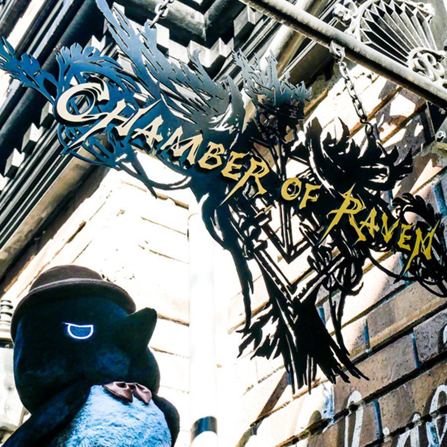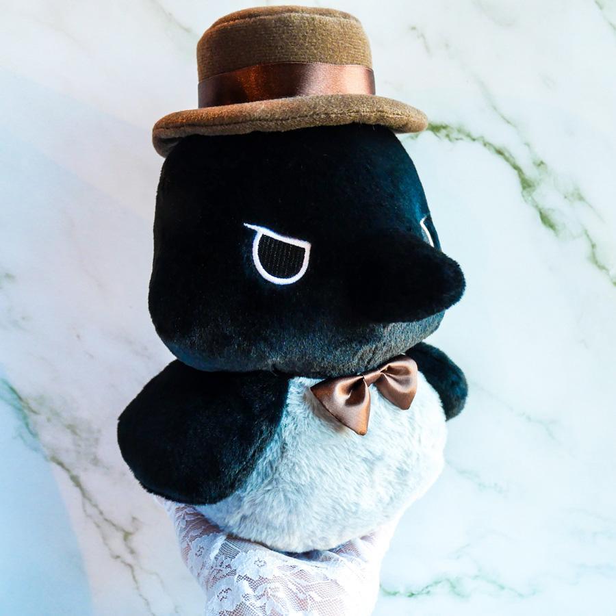 当館の看板鴉【バーディーくん】のぬいぐるみ。
