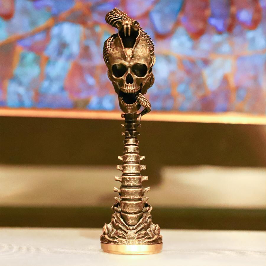 異世界ミッドエルドで絶大な力をもつオルドゥ魔法教団を象徴する蛇とスカルを、