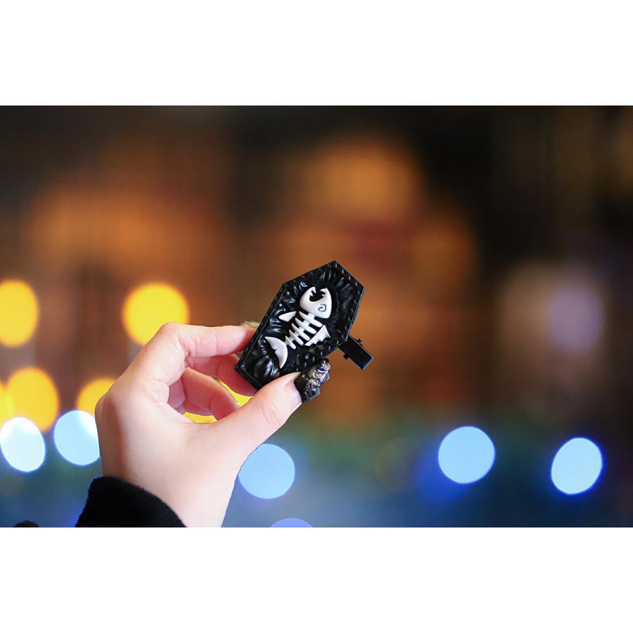 魔女の使い魔、黒猫のアンブラくんが大切にしている魚骨の入った棺をモチーフにしたオリジナルヘアピン。