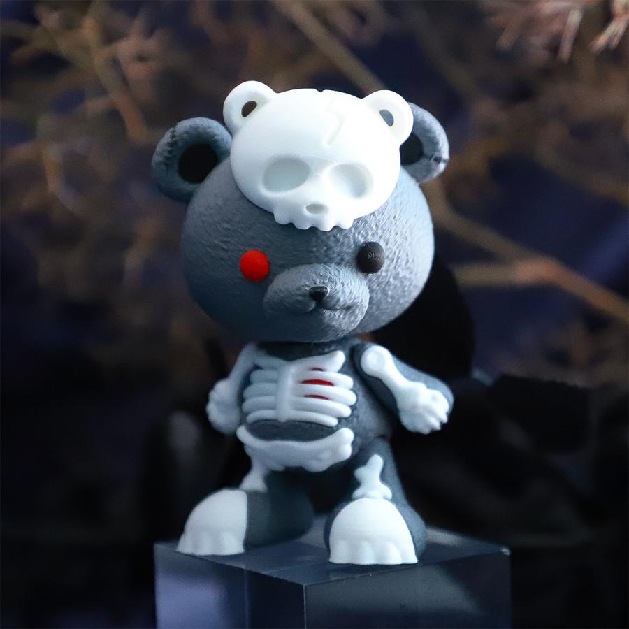ユニークなクマのスカルを身に着けたウィンクルくん。