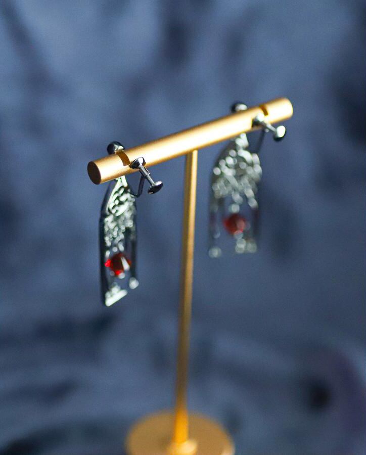 レッドジュエルが揺らめきます。気品を感じさせるオリジナルアクセサリー。