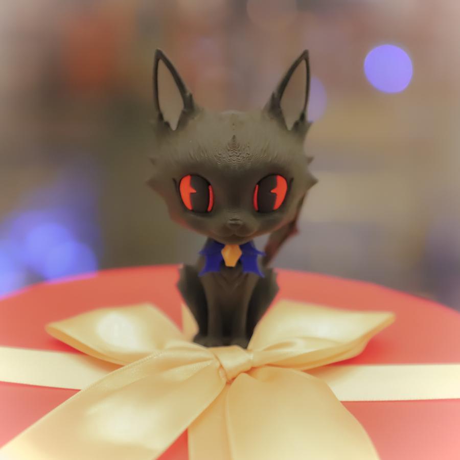首元にはゴールドの棺桶がついたブルーリボンをつけて不敵な笑みを浮かべ猫らしさ全開です。
