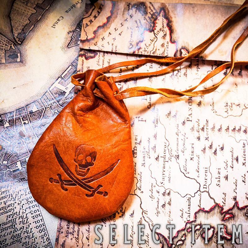 海賊の証たる、スカルの刻印がレザーバッグに入り中には8枚のコインが入っています。