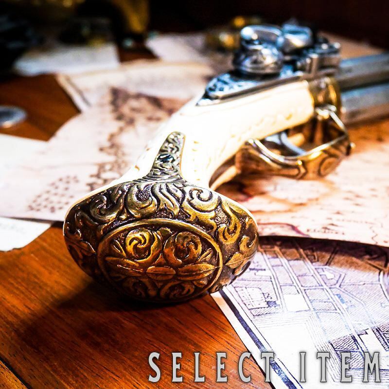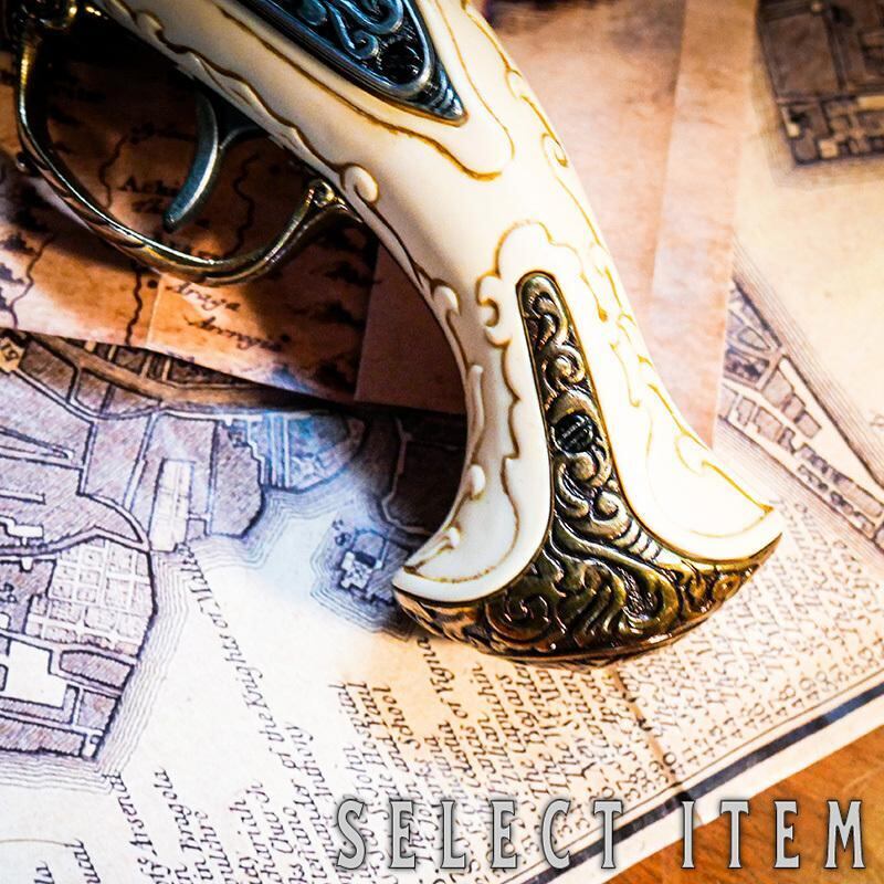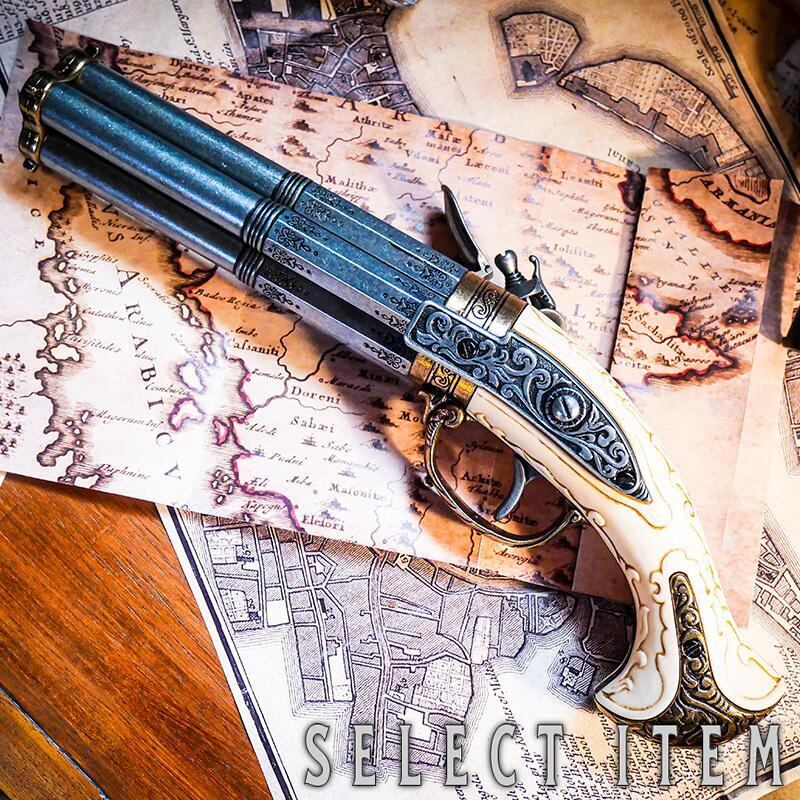 フランス18世紀のフリントロック 4バレルピストルレプリカ。
