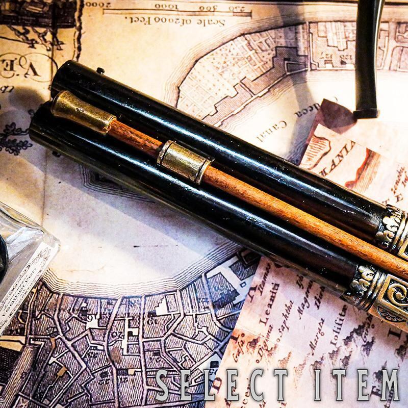 象牙を模したグリップ部分や金属部分に至るまで、繊細なデザインが施されております。